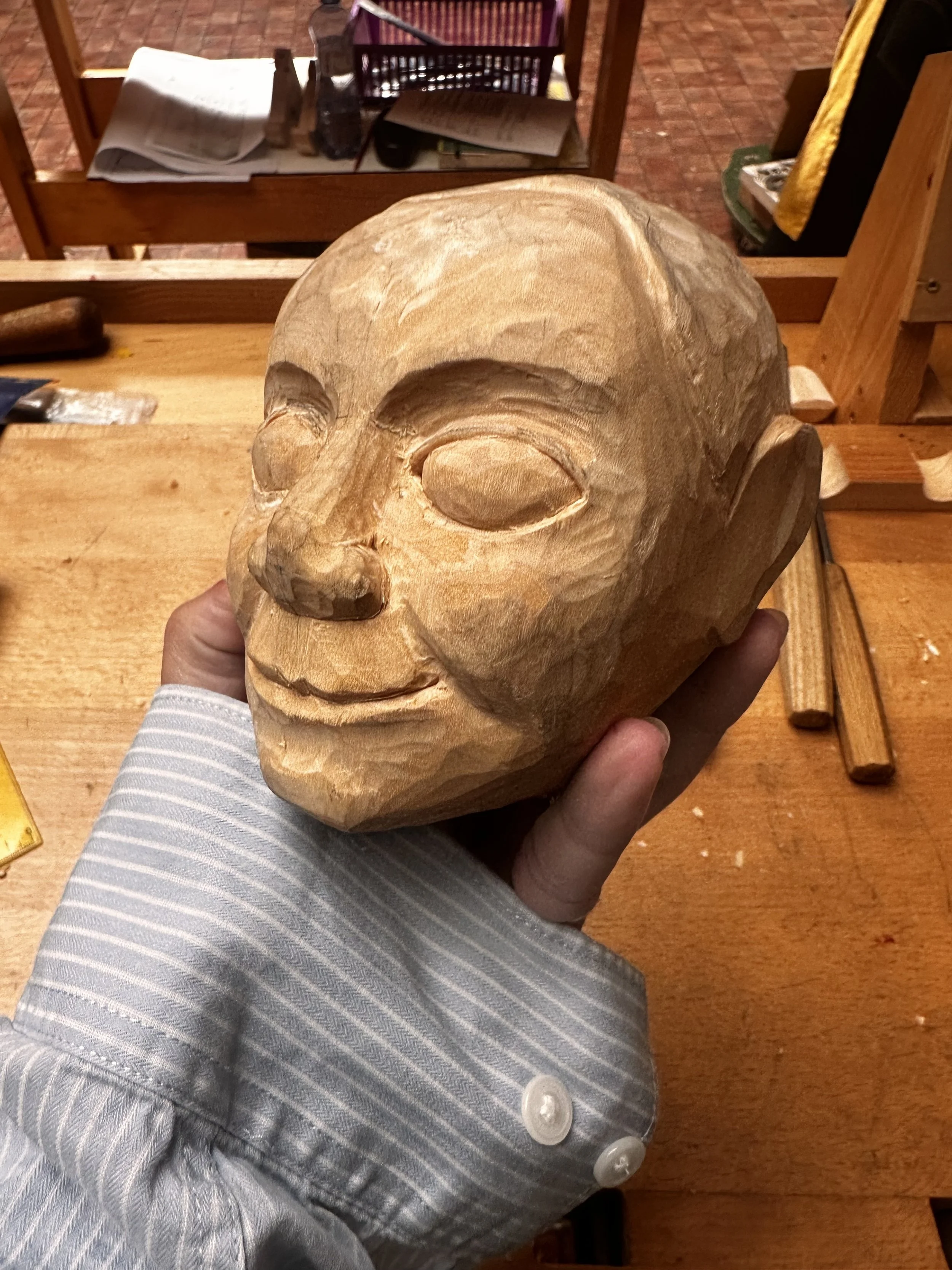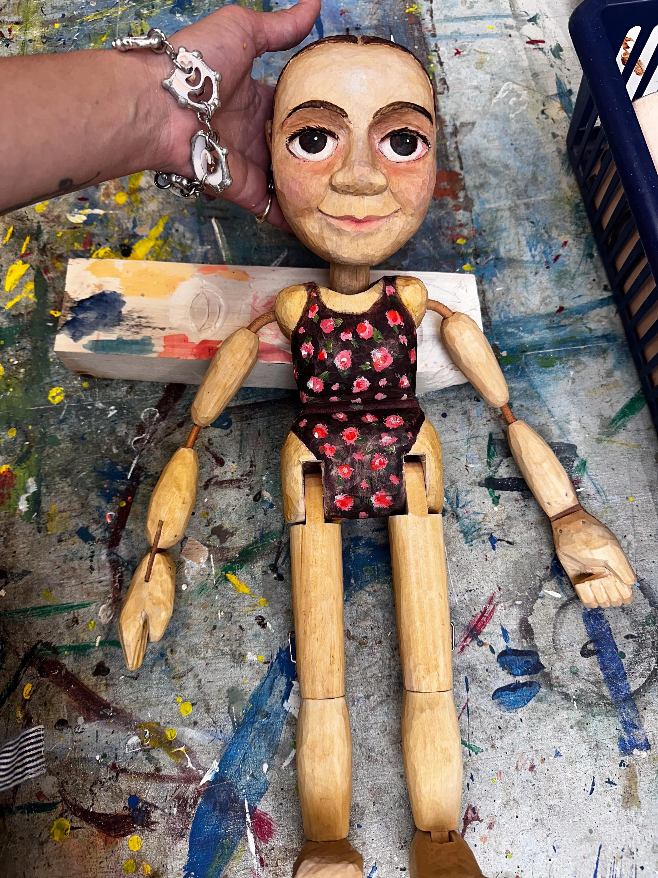 A traditional hand carved wooden marionette of my child-self developed while studying abroad in Prague during the summer of 2025, under Mirek Trejtnar.